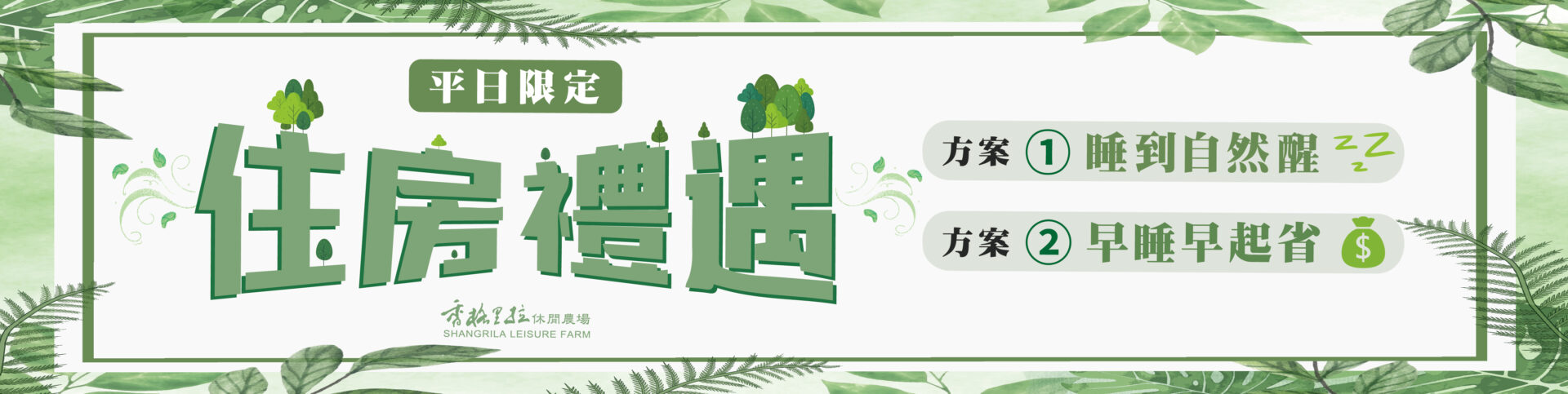 | 換房加價說明 | 農場 | 極致家庭房升等「極致樓中樓」:$1,600/每晚 林道房升等「蘭景」房:$500/每晚 |