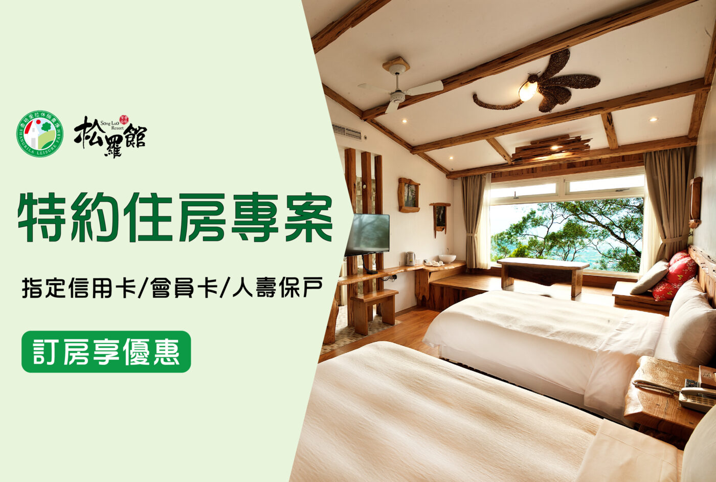 | 尊榮林道房 (2人) | ➤ | 極致林道房 (2人) | $4,400 | $4,800 | $5,400 | ||||